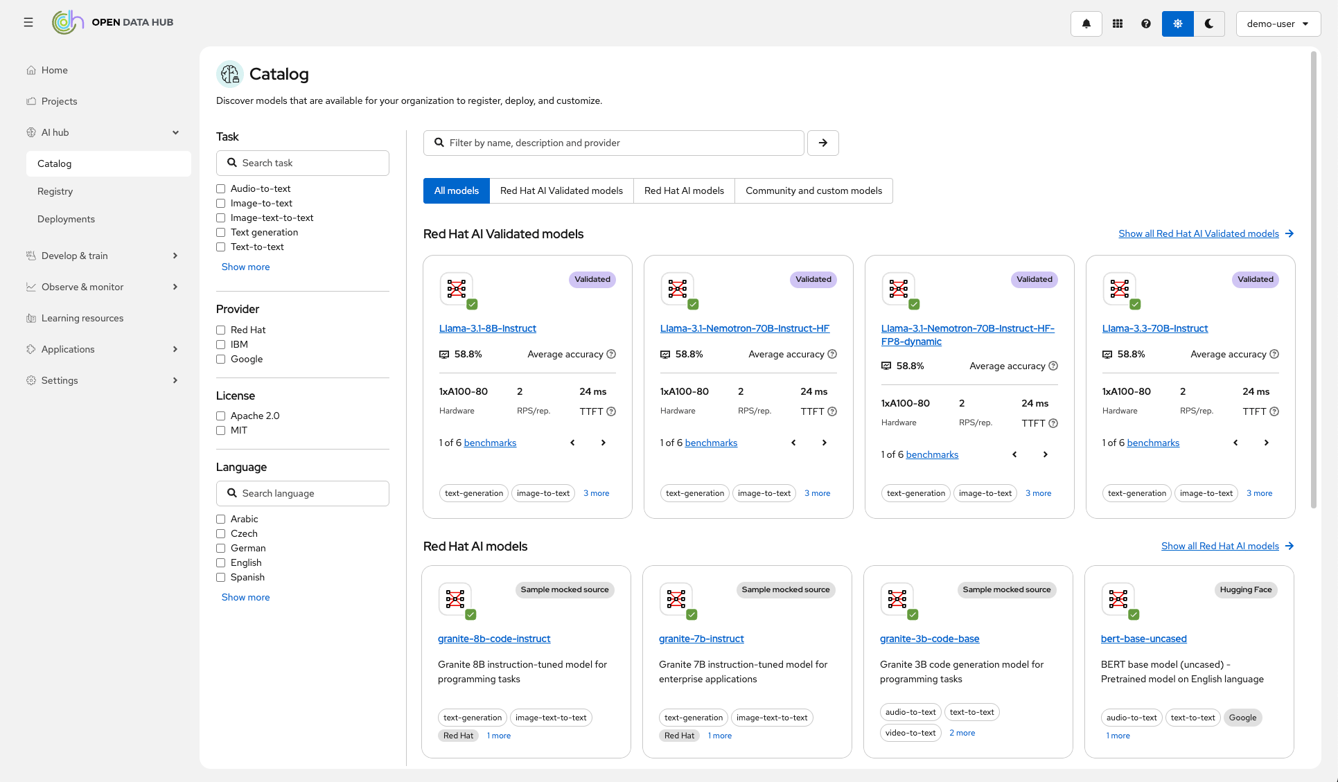מודלים חדשים מאומתים ומותאמים של רד האט – המבחר שנאסף כולל מודלים פופולריים של קוד פתוח כמו gpt-oss של DeepSeek-R1, OpenAI ומודלים מיוחדים כמו Whisper עבור דיבור לטקסט ו-Voxtral Mini לסוכנים התומכים בקול.