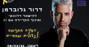 בעידן שבו הבינה המלאכותית משנה במהירות את שוק העבודה, הכלכלה והתרבות הארגונית, איש התקשורת והמרצה דרור גלוברמן יקיים הרצאה מרתקת בנושא השפעת ה-AI, הקריירה והעתיד המקצועי שלנו ושל הדור הבא. ההרצאה תתקיים ביום ראשון, 8 בפברואר 2026, בפאב “הבועה” בבת חפר, וכל הכנסותיה ייתרמו לעמותת "גדולים מהחיים", לטובת הקמת גני חלומות – גני ילדים לילדים המחלימים מסרטן. בהרצאה יעסוק גלוברמן …